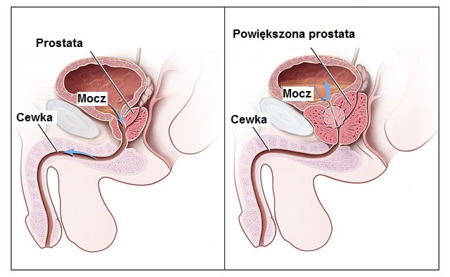 Powiększenie prostaty (w skrócie BPH, od Benign Prostatic Hyperplasia) skutkuje wystąpieniem tzw. przeszkody podpęcherzowej, cewka moczowa jest uciśnięta, mocz wypływa wolniej, pęcherz nie opróżnia się całkowicie. Powoduje to nasilenie częstotliwości oddawania moczu, przebudowę ścian pęcherza i stopniowo zmienia się funkcjonowanie mięśnia wypieracza moczu. Zmiany mogą być nieodwracalne. Na skutek powiększenia prostaty może dojść do całkowitego zatrzymania moczu (konieczne będzie założenie cewnika) lub uszkodzenia nerek (w skrajnych przypadkach trwałego uszkodzenia nerek wymagającego leczenia dializami). BPH może skutkować nawrotowymi zakażeniami układu moczowego, powstaniem kamicy pęcherza, wystąpieniem krwiomoczu.